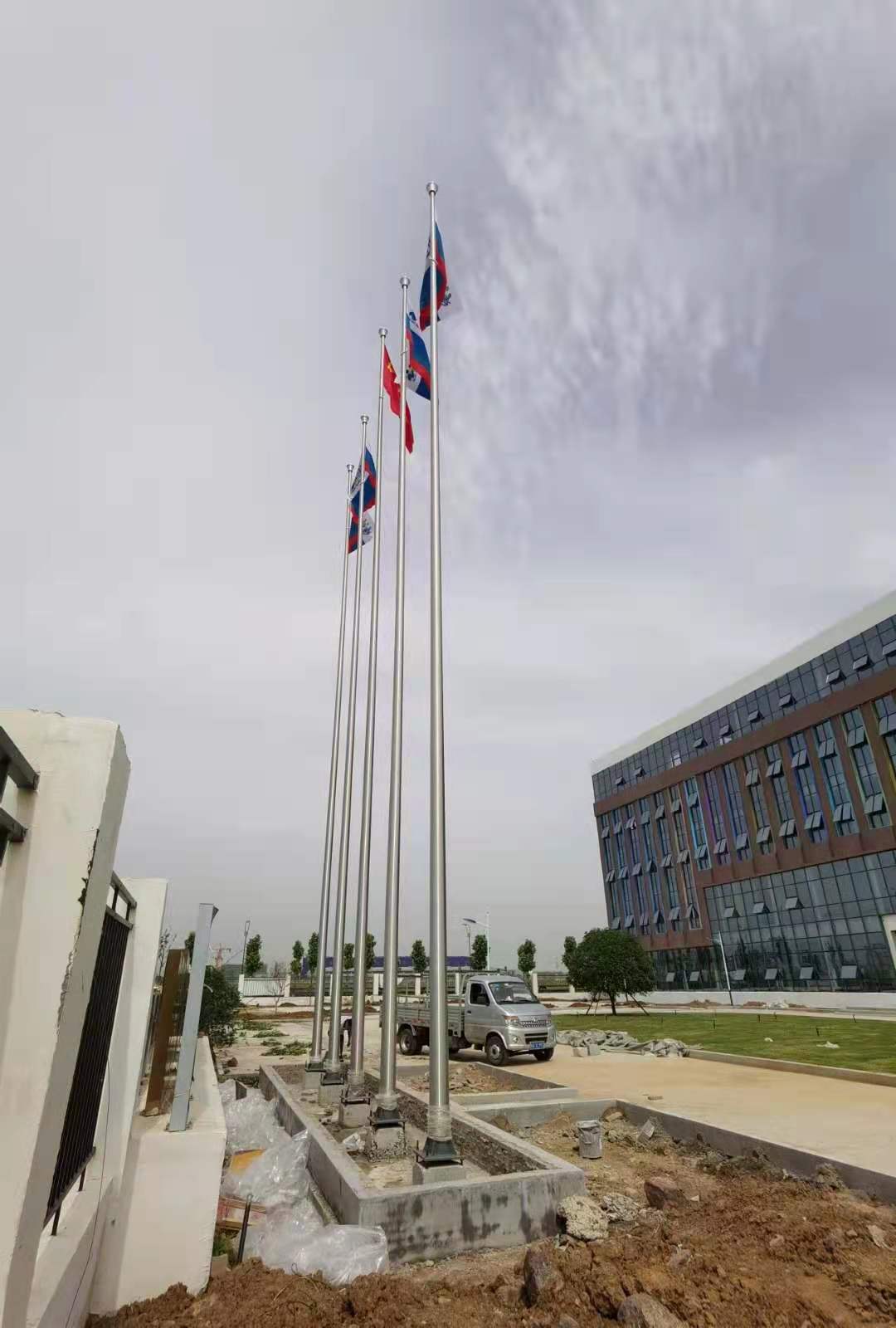 左尚金屬制品有限公司安徽耀龍旗桿為明光科迪新材料有限公司樹立5根15米不銹鋼錐形旗桿。明光科迪新材料有限公司旗桿外形一體成型錐度上升無變徑截口、桿體流暢自然,整體挺拔莊嚴。旗桿表面采用啞光處理,環形發絲,色澤均勻,時尚大方。旗桿所有焊接牢固可靠,電焊均勻飽滿,焊接強度符合國家規范。因此,明光科迪新材料有限公司對左尚金屬制品有限公司安徽耀龍旗桿的品質非常滿意!安徽耀龍旗桿會繼續對旗桿的品質嚴格把控,設計生產優質的旗桿。